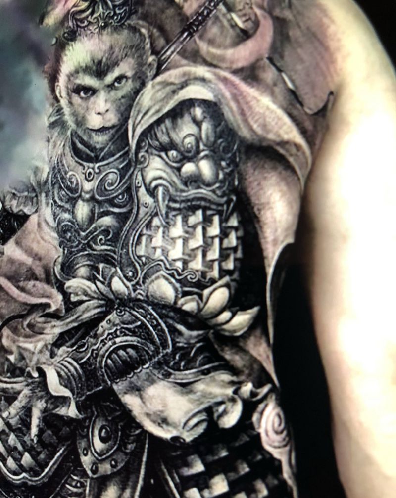 悟空纹身手稿纹身图片_手臂背部新传统老传统纹身图案