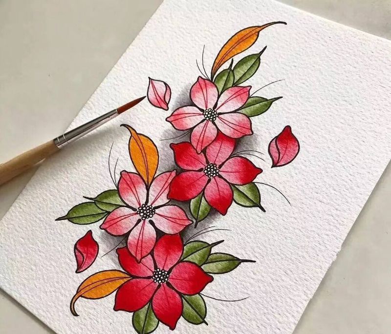 一组15张莲花纹身手