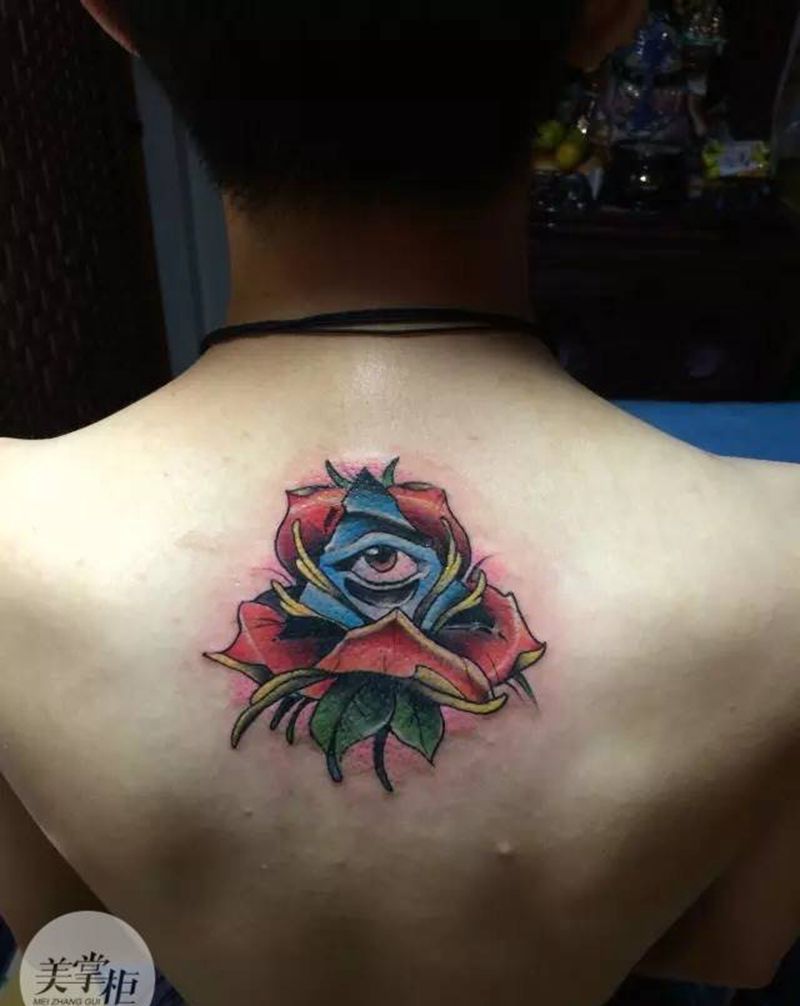 • 手背潮流时尚的玫瑰花眼睛纹身图案