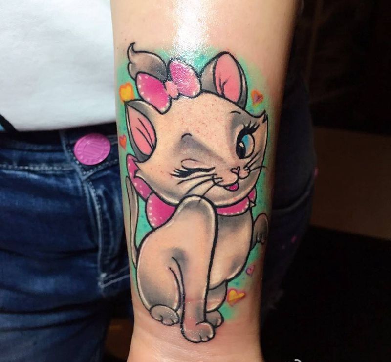 newschool 喵纹身图片_成品手臂手部欧美写实动物原创纹身图案