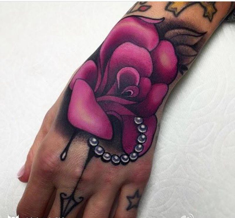 • 手背潮流时尚的玫瑰花眼睛纹身图案