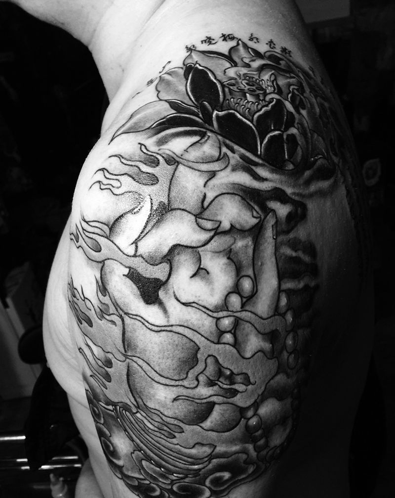 当前位置: 首页 >陕西省西安市纹身店-纹墨轩纹身纹身图案>设计作品佛手云雾莲花纹身图片