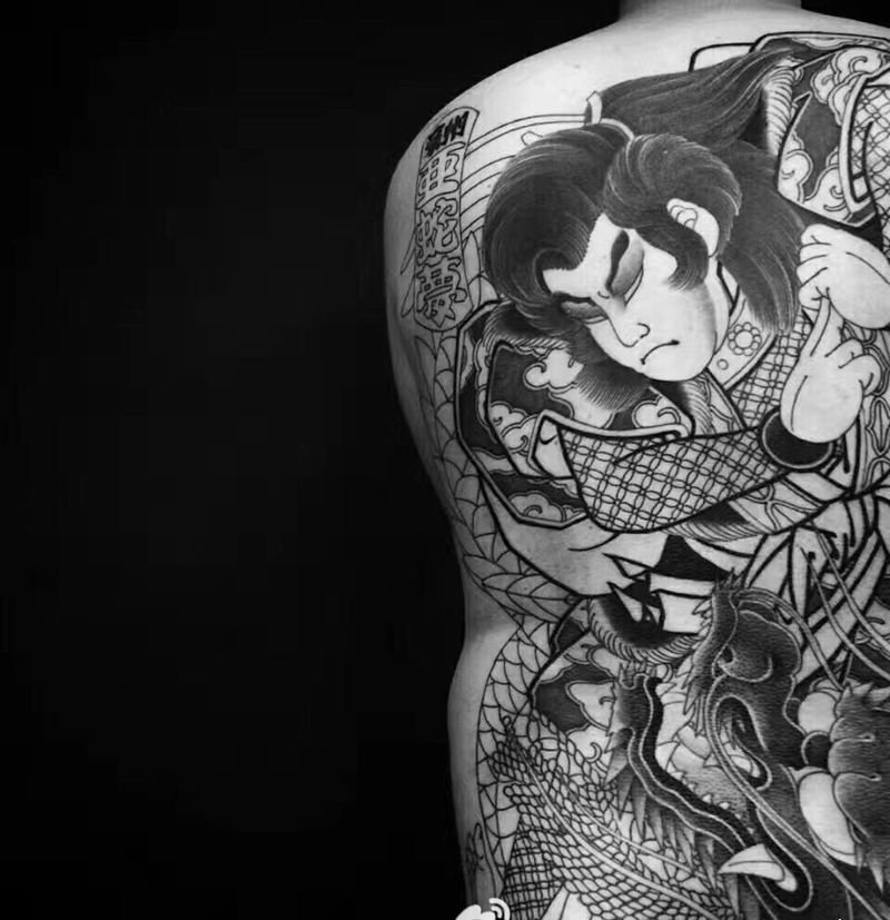 黑灰满背纹身图案
