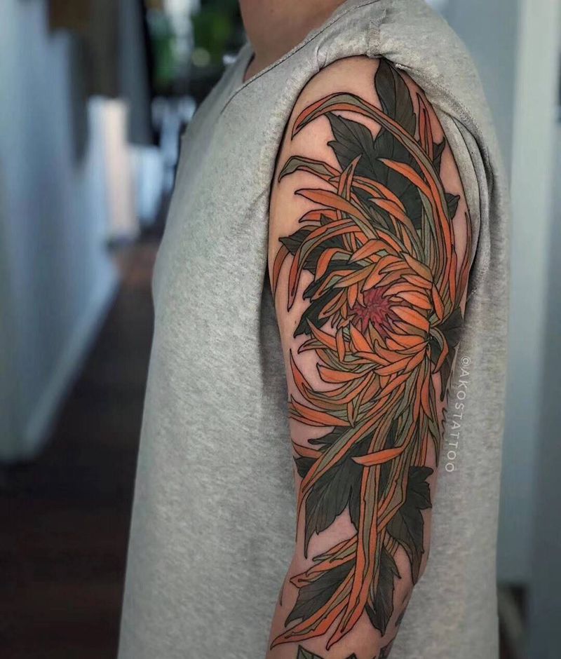 当前位置: 首页 >陕西省西安市纹身店-纹墨轩纹身纹身图案>菊花纹身图片_成品手稿肩部腰部手臂腿部背部胸部传统原创纹身图案