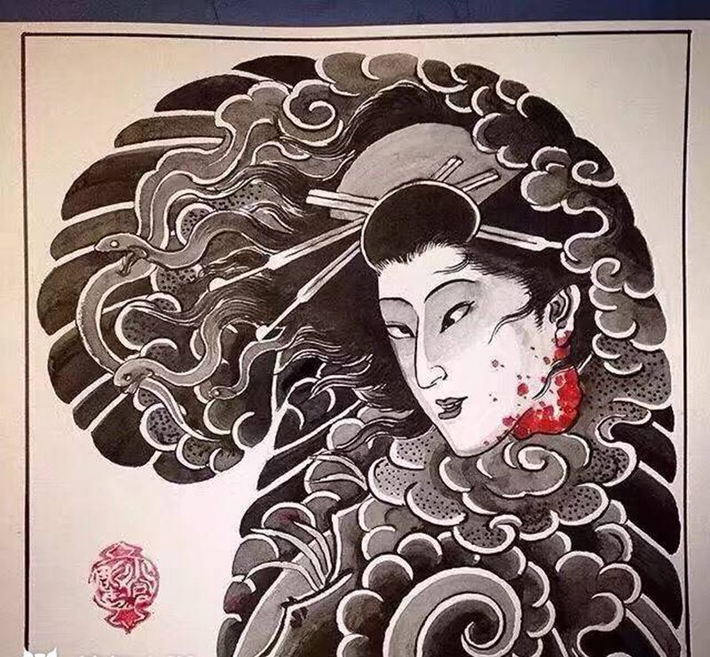 当前位置: 首页 >陕西省西安市纹身店-纹墨轩纹身纹身图案>西安纹墨轩刺青骡马市艺妓纹身推荐纹图纹身图片