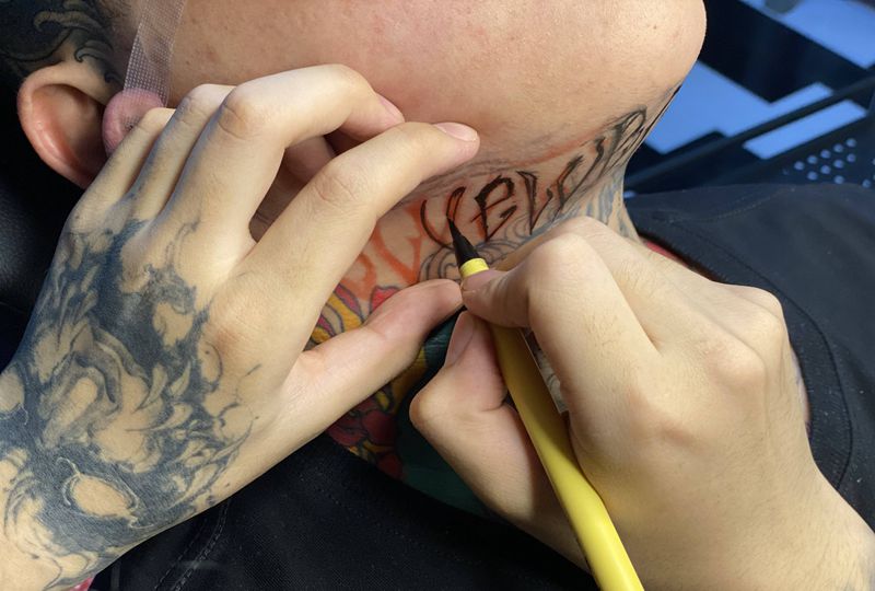 当前位置: 首页 >陕西省西安市纹身店-弈刺青.纹身图案>花体字纹身图片_颈部花体字纹身图案