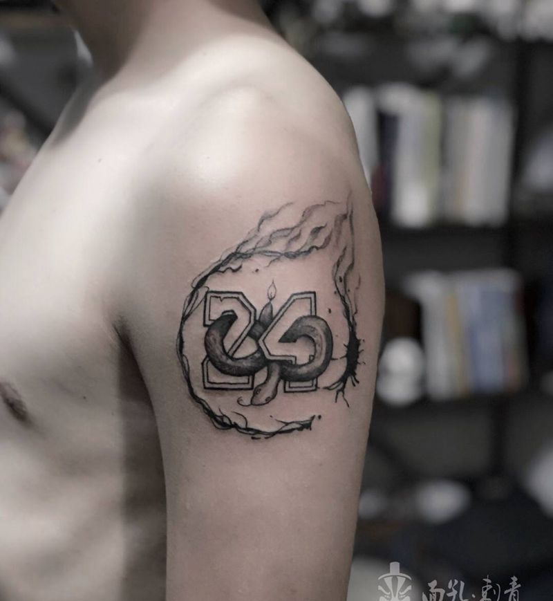 致敬科比纹身图片_肩部手臂水墨纹身图案
