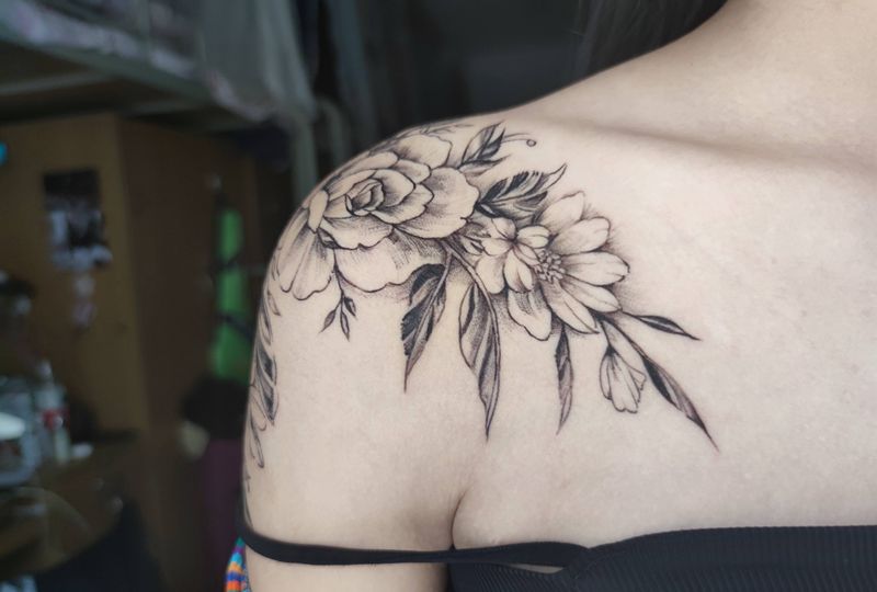 • 女性大花胸纹身_43张霸气漂亮的女性大花胸纹身图案作品