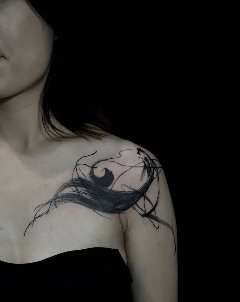 遮盖旧纹身纹身图片_肩部胸部水墨纹身图案
