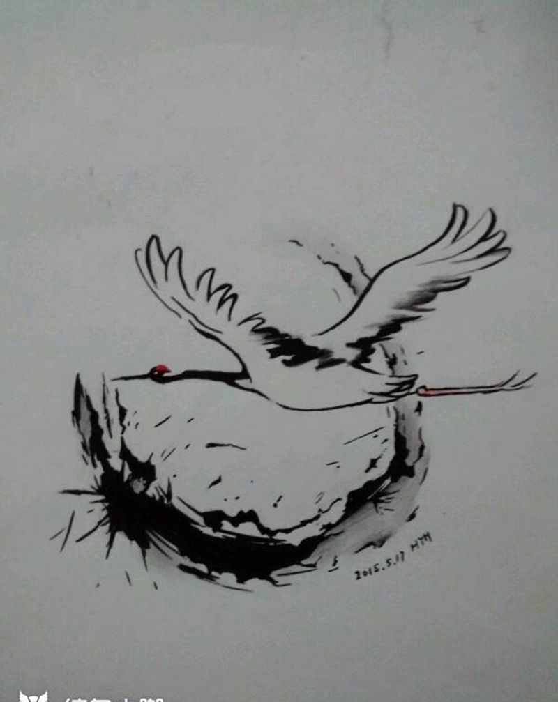 当前位置: 首页 >陕西省西安市纹身店-西安面孔刺青纹身图案>鹤纹身图片_颈部胸部背部腿部手部传统国画动物原创手稿纹身图案