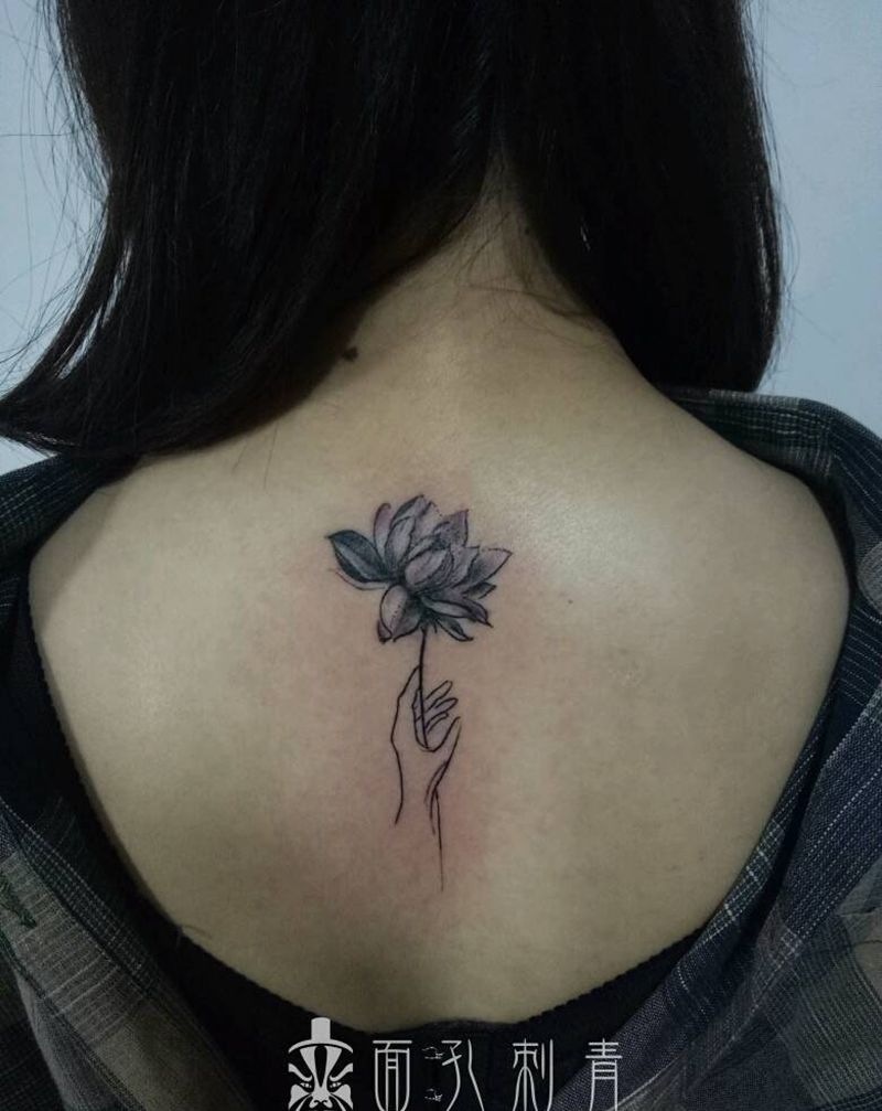 当前位置: 首页 >陕西省西安市纹身店-西安面孔刺青纹身图案>莲花小清新纹身图片_背部几何植物原创成品纹身图案