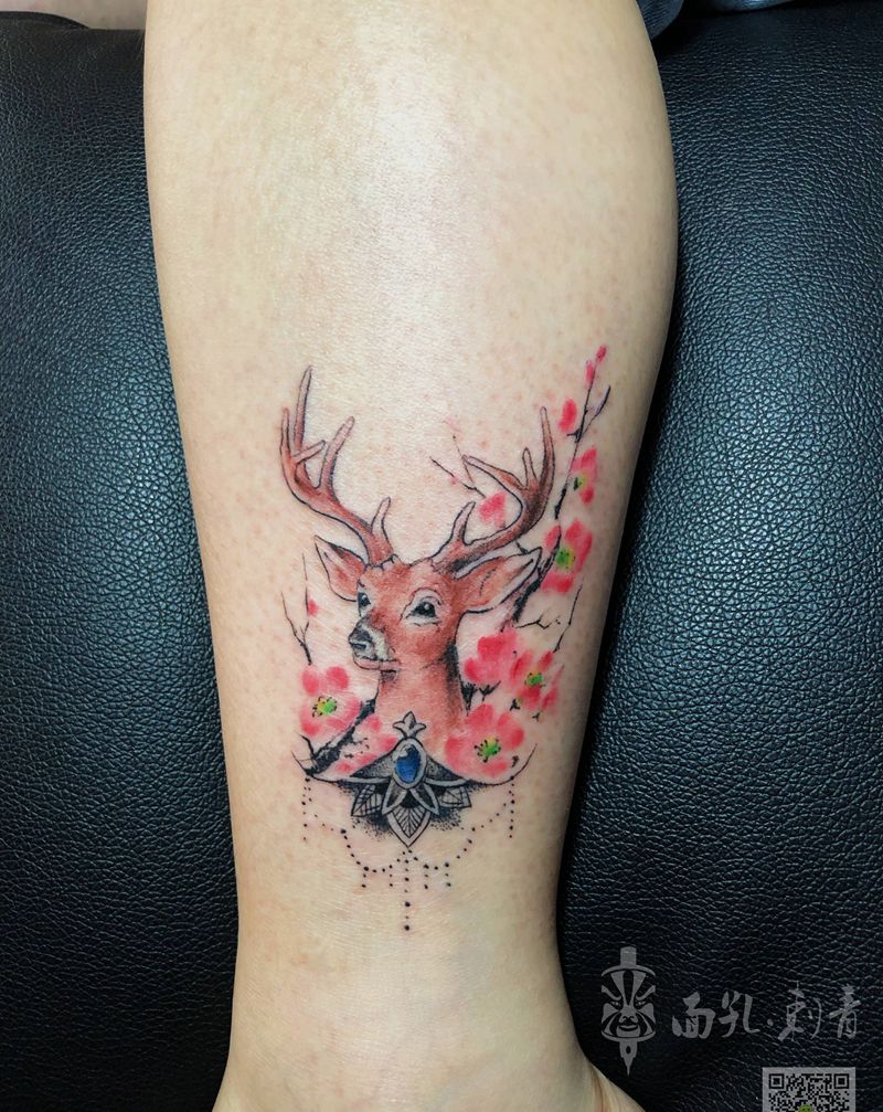 当前位置: 首页 >陕西省西安市纹身店-西安面孔刺青纹身图案>小鹿纹身图片_腿部水彩欧美写实纹身图案