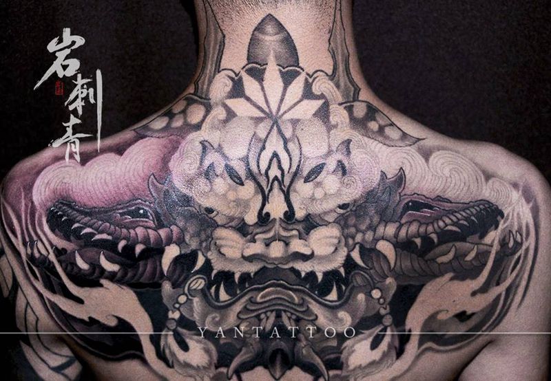 当前位置: 首页 >陕西省西安市纹身店-西安岩刺青纹身工作室纹身图案>唐狮子鳄鱼纹身图片_背部新传统纹身图案