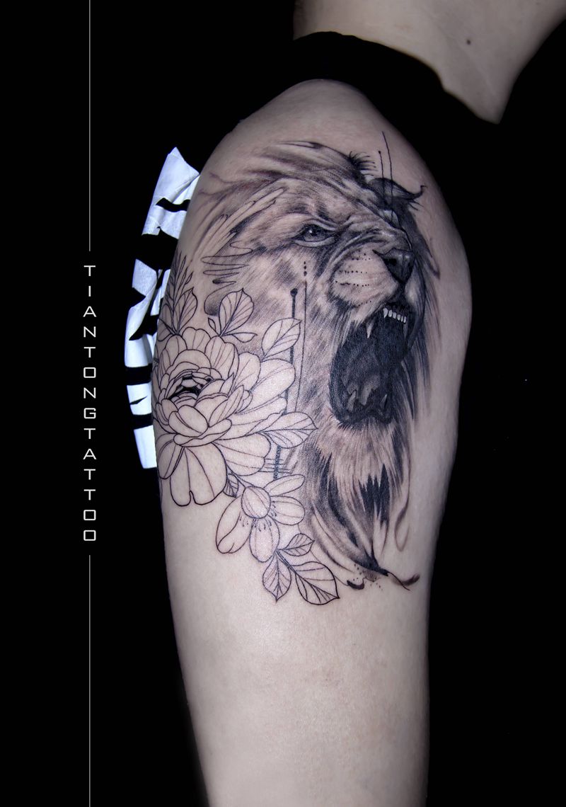 当前位置: 首页 >陕西省西安市纹身店-西安岩刺青纹身工作室纹身图案>狮子头纹身图片_手臂几何纹身图案