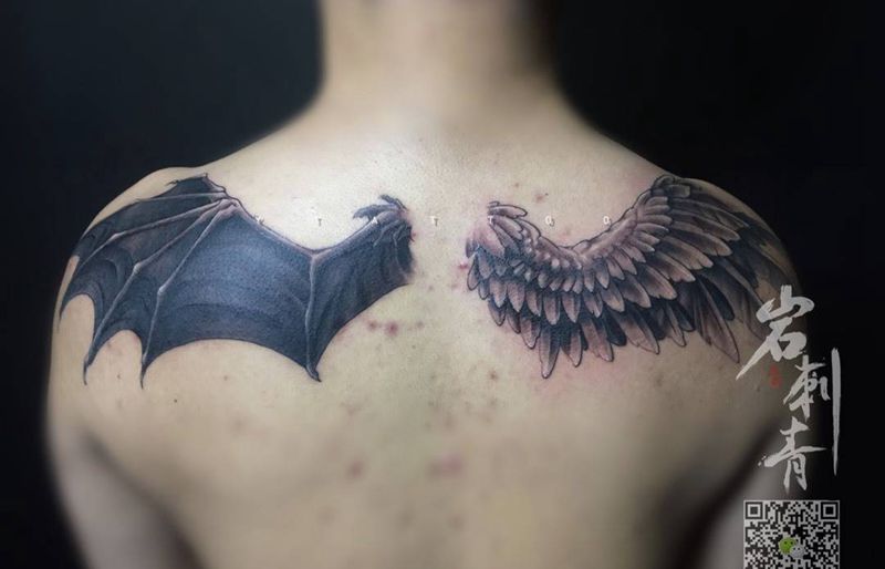 当前位置: 首页 >陕西省西安市纹身店-西安岩刺青纹身工作室纹身图案>恶魔天使之翼纹身图片_成品背部欧美鬼神宗教纹身图案