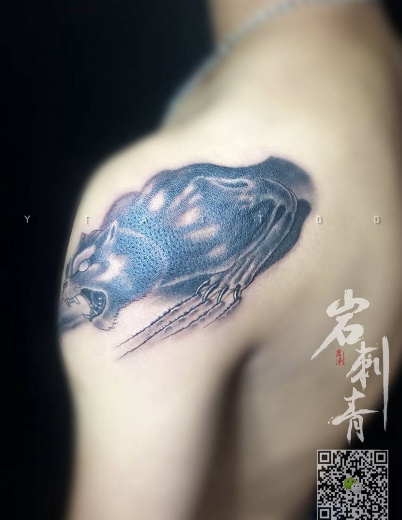 黑豹纹身图片_成品肩部欧美动物纹身图案
