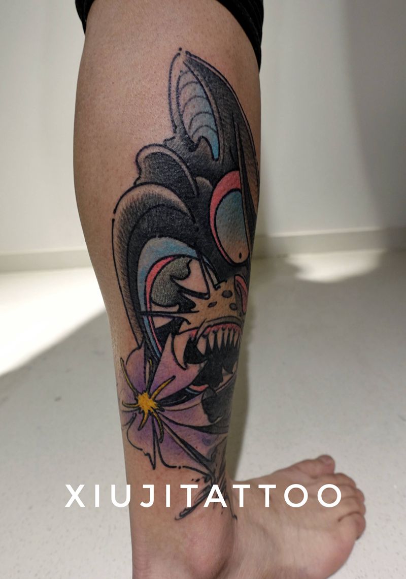 • T网红王老大花腿龙纹身图片_腿部新传统纹身图案