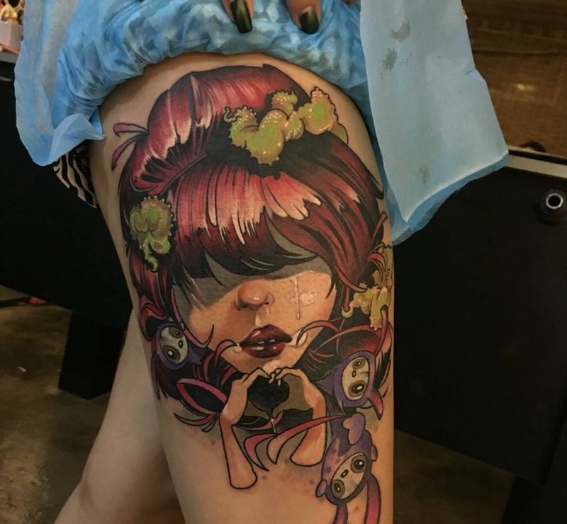 当前位置: 首页 >陕西省西安市纹身店-绣佶刺青纹身图案>new school纹身图片_成品腿部欧美清新人物纹身图案