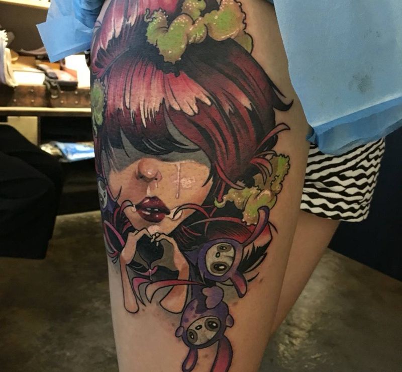 当前位置: 首页 >陕西省西安市纹身店-绣佶刺青纹身图案>new school纹身图片_成品腿部欧美清新人物纹身图案