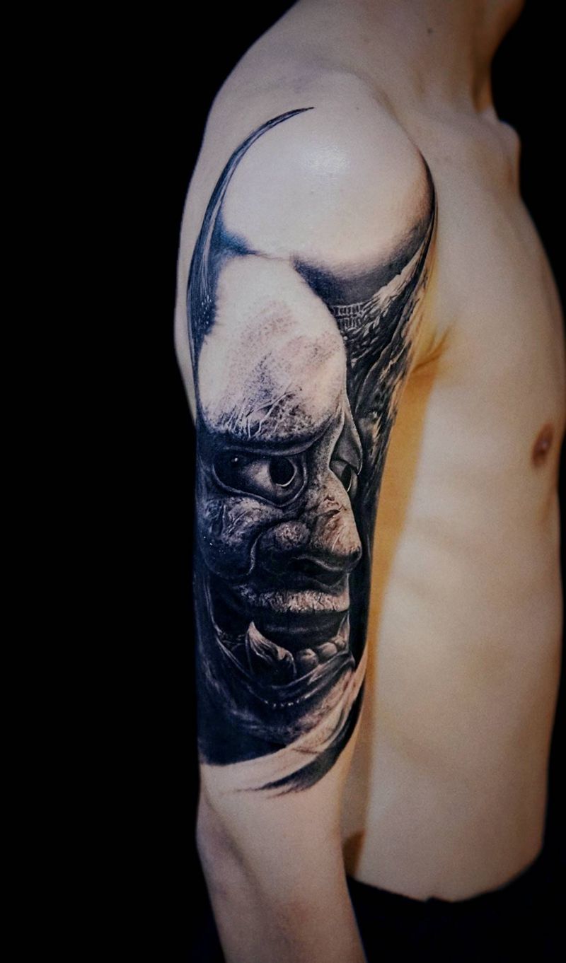 写实般若纹身图片_手臂肩部欧美写实纹身图案