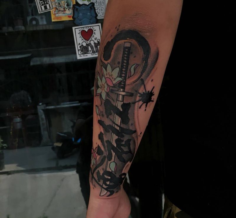 当前位置: 首页 >陕西省西安市纹身店-绣佶刺青纹身图案>字体纹身图片_成品手稿手臂传统国画字符原创纹身图案