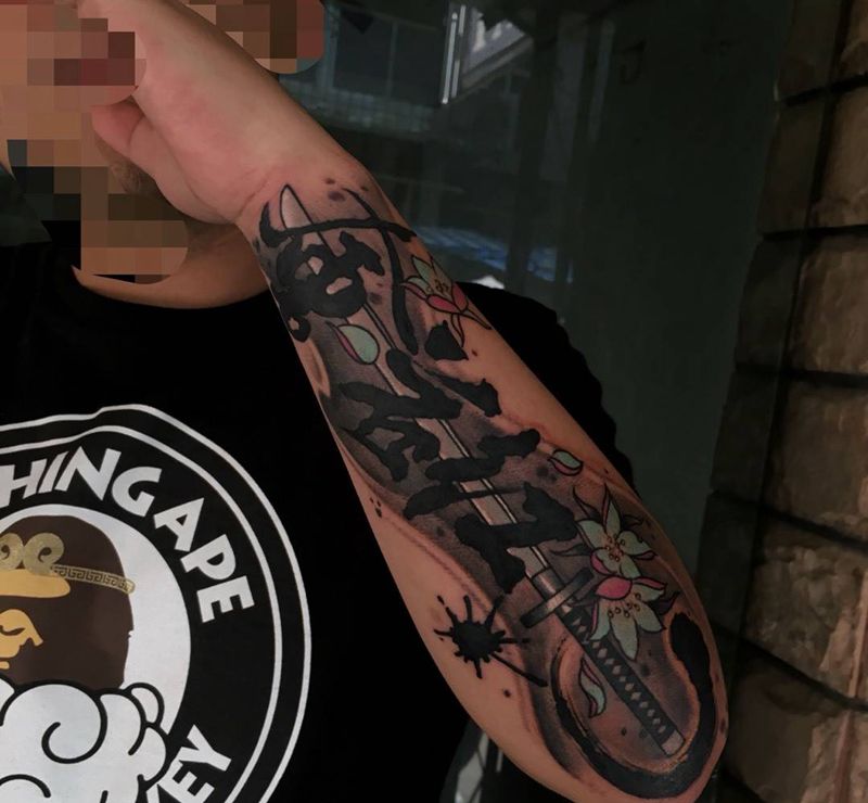 当前位置: 首页 >陕西省西安市纹身店-绣佶刺青纹身图案>字体纹身图片_成品手稿手臂传统国画字符原创纹身图案