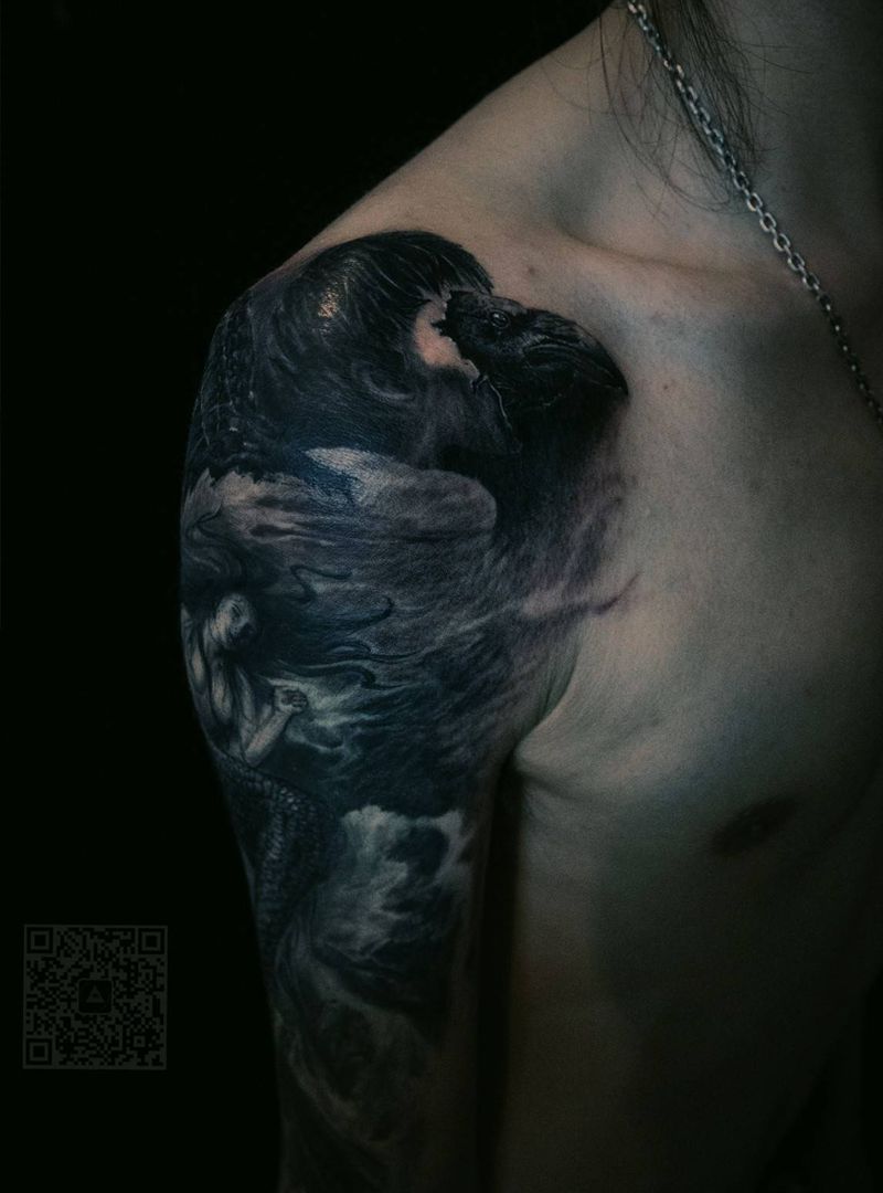 黑灰满背纹身图案