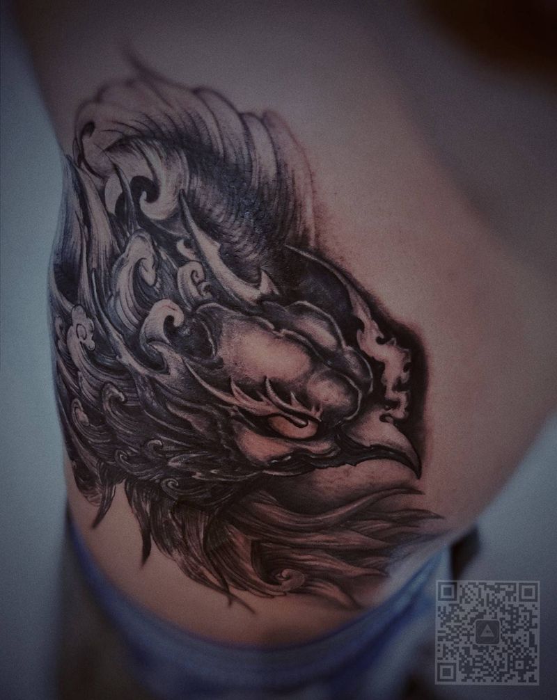 • T网红王老大花腿龙纹身图片_腿部新传统纹身图案
