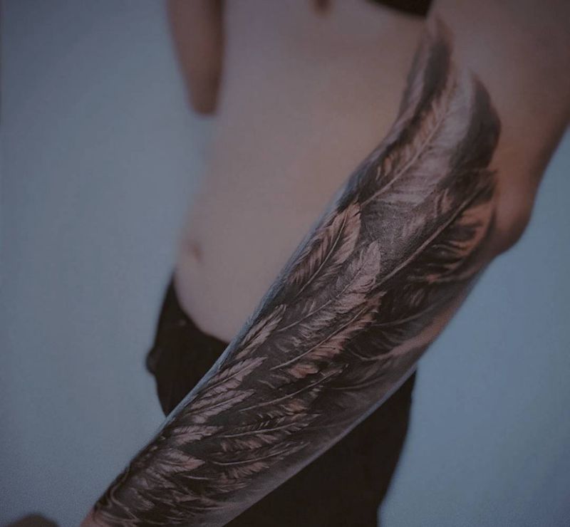 当前位置: 首页 >陕西省西安市纹身店-叁目乌TATTOO STUDIO纹身图案>翅膀纹身图片_手臂背部欧美写实纹身图案