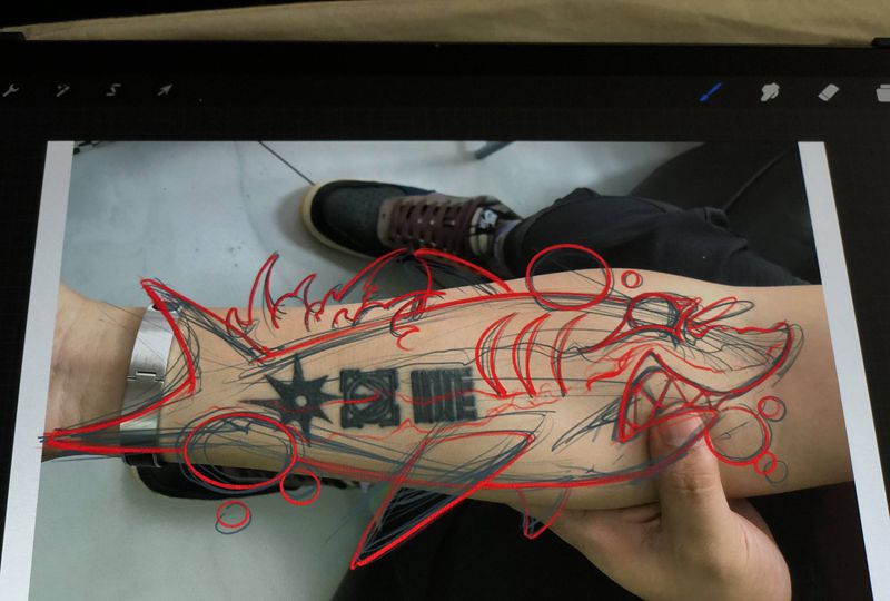 当前位置: 首页 >陕西省西安市纹身店-绣佶刺青纹身图案>new school 鲨鱼 遮纹身图片_手臂New School鲨鱼 遮盖纹身图案