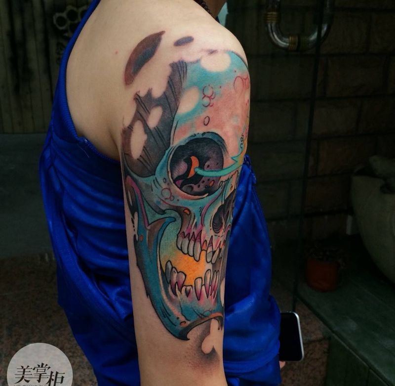 当前位置: 首页 >陕西省西安市纹身店-绣佶刺青纹身图案>骷髅纹身图片_欧美肖像清新鬼神手臂纹身图案