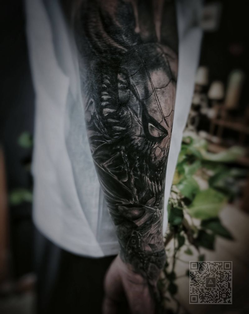 当前位置: 首页 >陕西省西安市纹身店-叁目乌TATTOO STUDIO纹身图案>毒液纹身图片_手臂手部欧美写实纹身图案