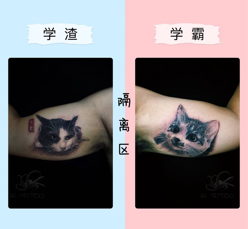 当前位置: 首页 >陕西省西安市纹身店-叁目乌TATTOO STUDIO纹身图案>俩只喵纹身图片_手臂胸部欧美写实纹身图案