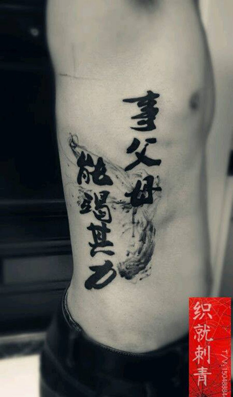 • T关于私处得爱!纹身图片_成品腹部清新字符图腾纹身图案