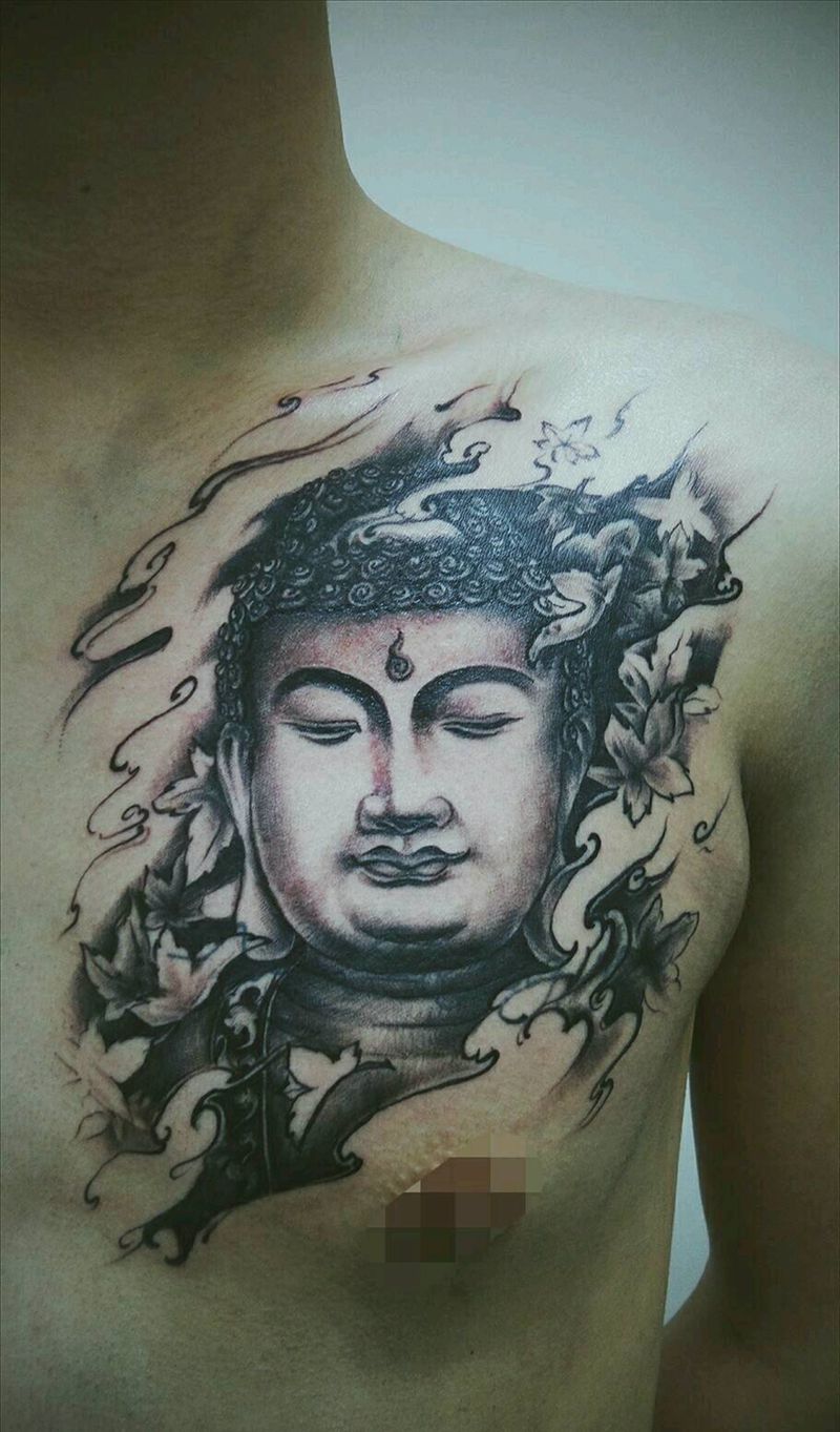 当前位置: 首页 >陕西省西安市纹身店-叁目乌TATTOO STUDIO纹身图案>佛像遮盖前胸字母纹身图片