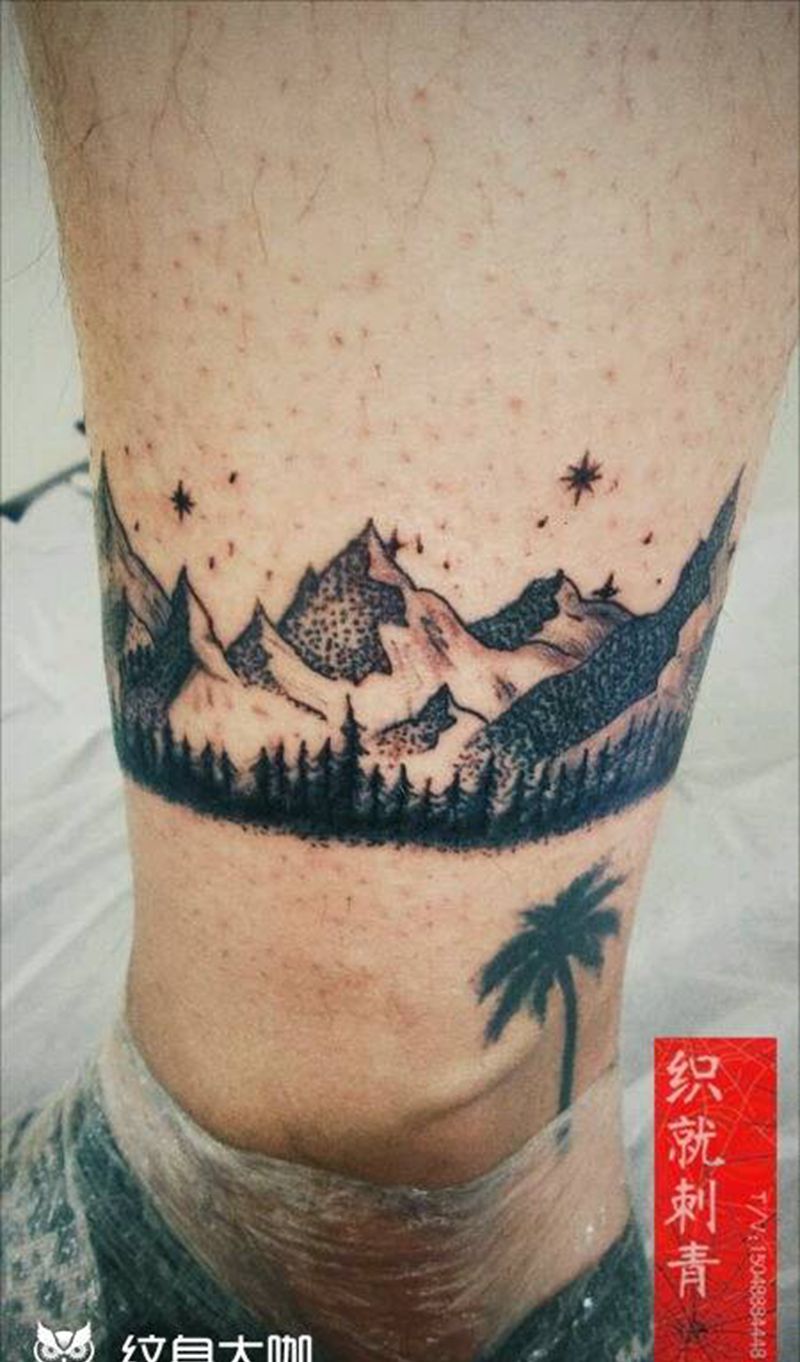 当前位置: 首页 >陕西省西安市纹身店-叁目乌TATTOO STUDIO纹身图案>风景腿环,树旁差一圈儿纹身图片