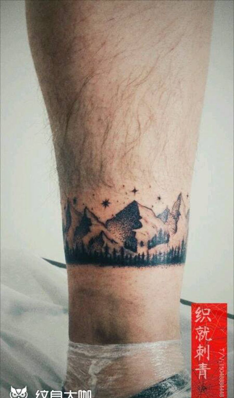 当前位置: 首页 >陕西省西安市纹身店-叁目乌TATTOO STUDIO纹身图案>风景腿环,树旁差一圈儿纹身图片