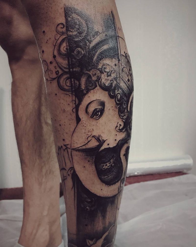 当前位置: 首页 >陕西省西安市纹身店-叁目乌TATTOO STUDIO纹身图案>象神(黑灰部分)纹身图片