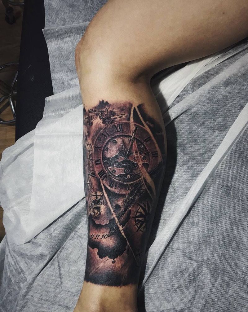 • T网红王老大花腿龙纹身图片_腿部新传统纹身图案