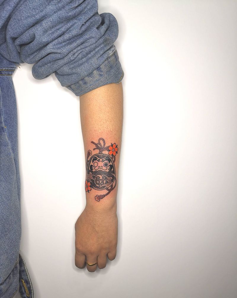 当前位置: 首页 >陕西省西安市纹身店-悲闻刺青纹身图案>达摩蛋纹身图片_手臂纹身图案