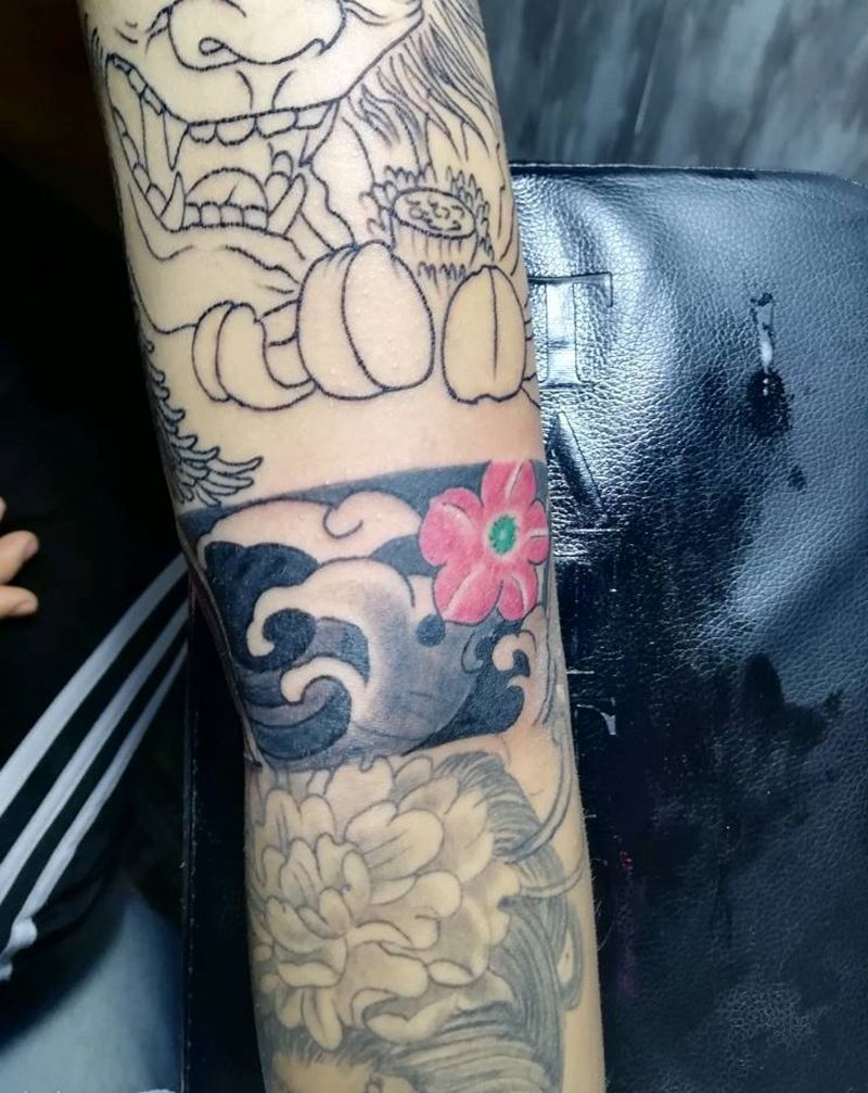 当前位置: 首页 >陕西省西安市纹身店-悲闻刺青纹身图案>浪花臂环纹身图片