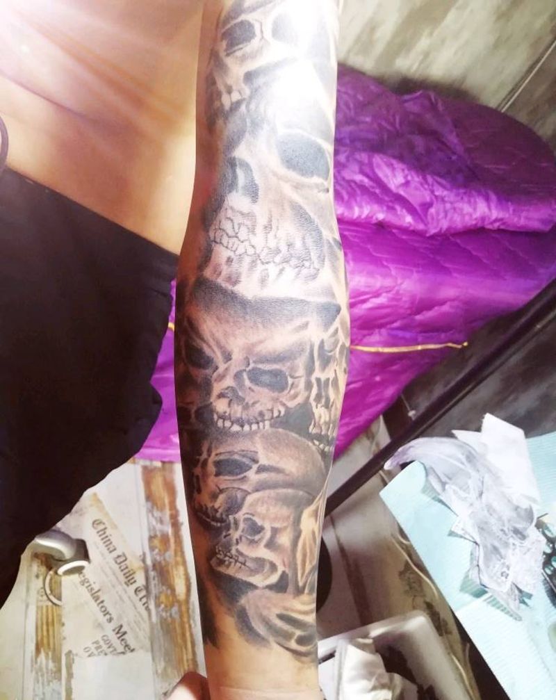 当前位置: 首页 >陕西省西安市纹身店-悲闻刺青纹身图案>骷髅花臂纹身图片