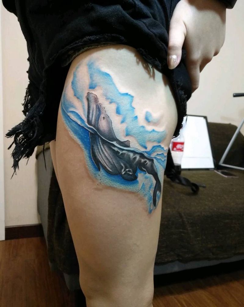 当前位置: 首页 >陕西省西安市纹身店-TATTOO HONE纹身工作室纹身图案>原创水彩鲸鱼纹身图片