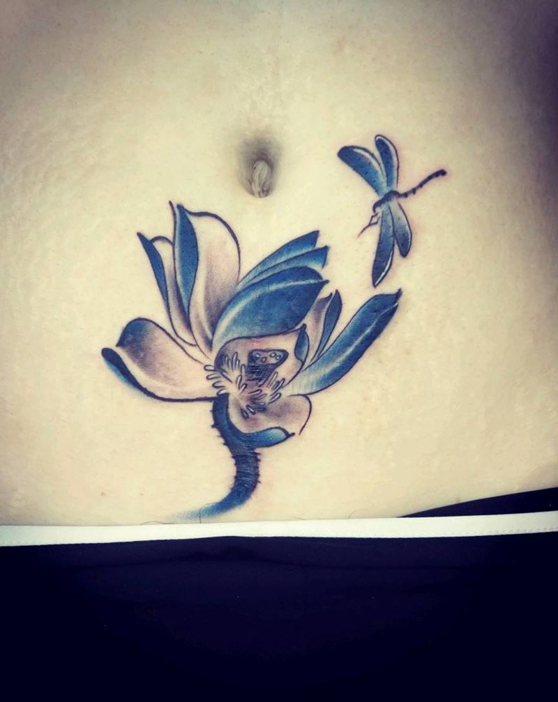 • 时尚性感的腹部莲花纹身图案