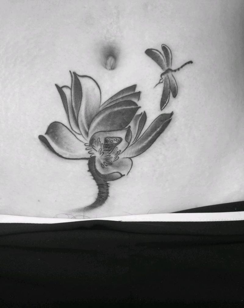 • 时尚性感的腹部莲花纹身图案