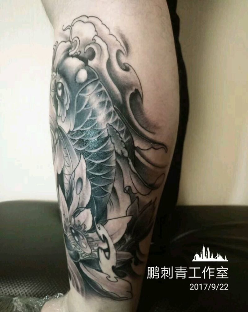 当前位置: 首页 >陕西省西安市纹身店-TATTOO HONE纹身工作室纹身图案>小腿鲤鱼纹身图片_成品纹身图案