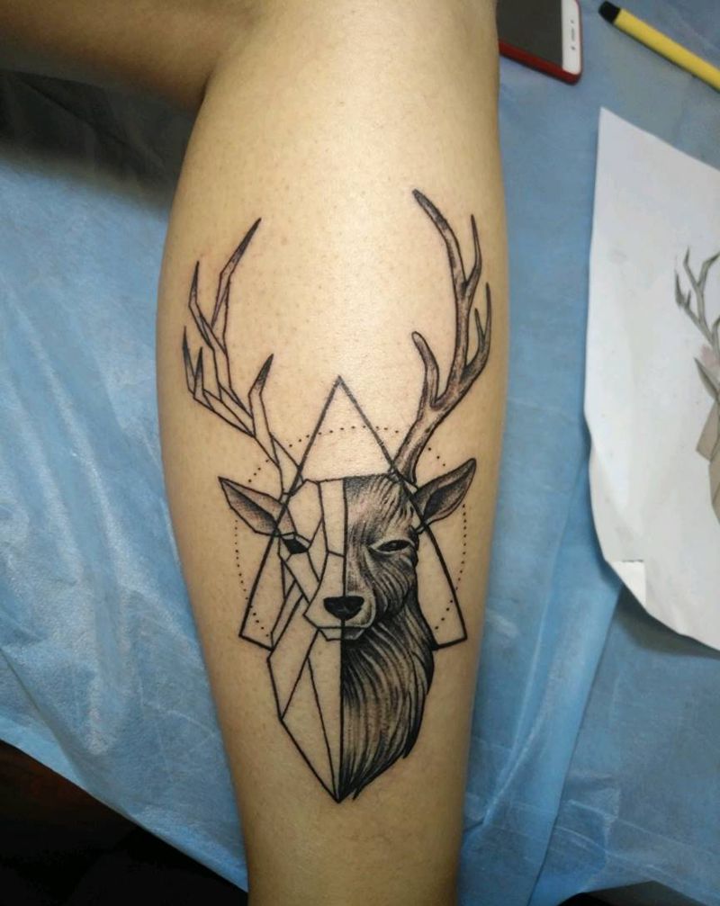 当前位置: 首页 >陕西省西安市纹身店-TATTOO HONE纹身工作室纹身图案>麋鹿纹身图片_腿部纹身图案