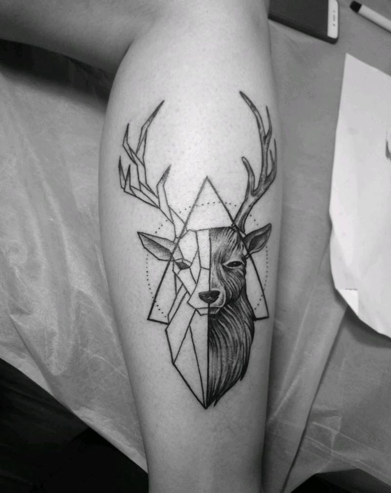 当前位置: 首页 >陕西省西安市纹身店-TATTOO HONE纹身工作室纹身图案>麋鹿纹身图片_腿部纹身图案