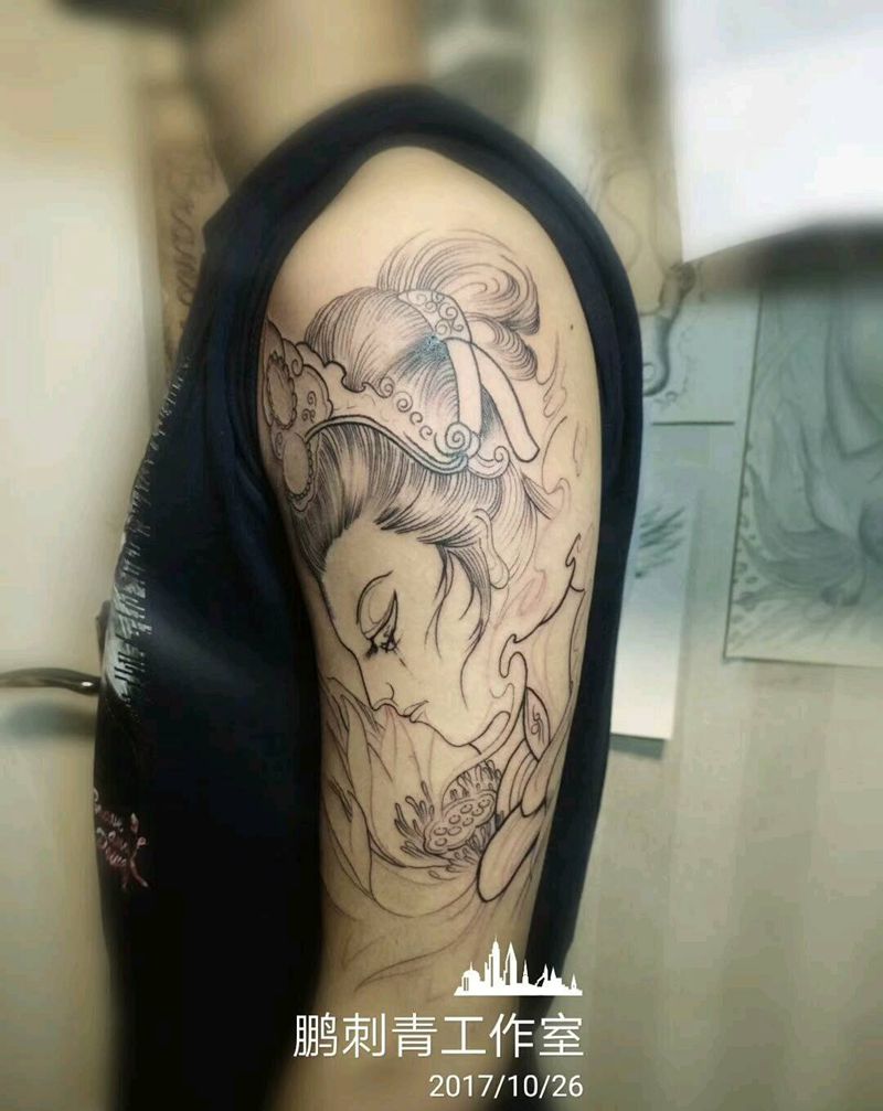 当前位置: 首页 >陕西省西安市纹身店-TATTOO HONE纹身工作室纹身图案>艺姬线条纹身图片_传统纹身图案