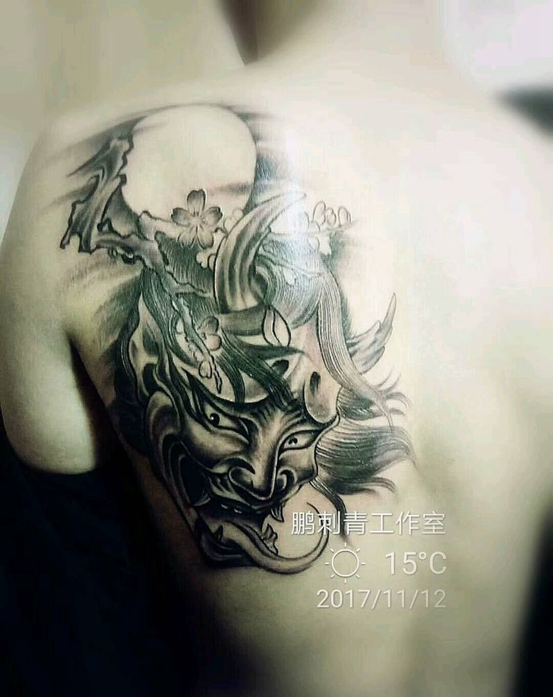 • 纹身吧推荐的披肩图腾半胛纹身图案作品展示